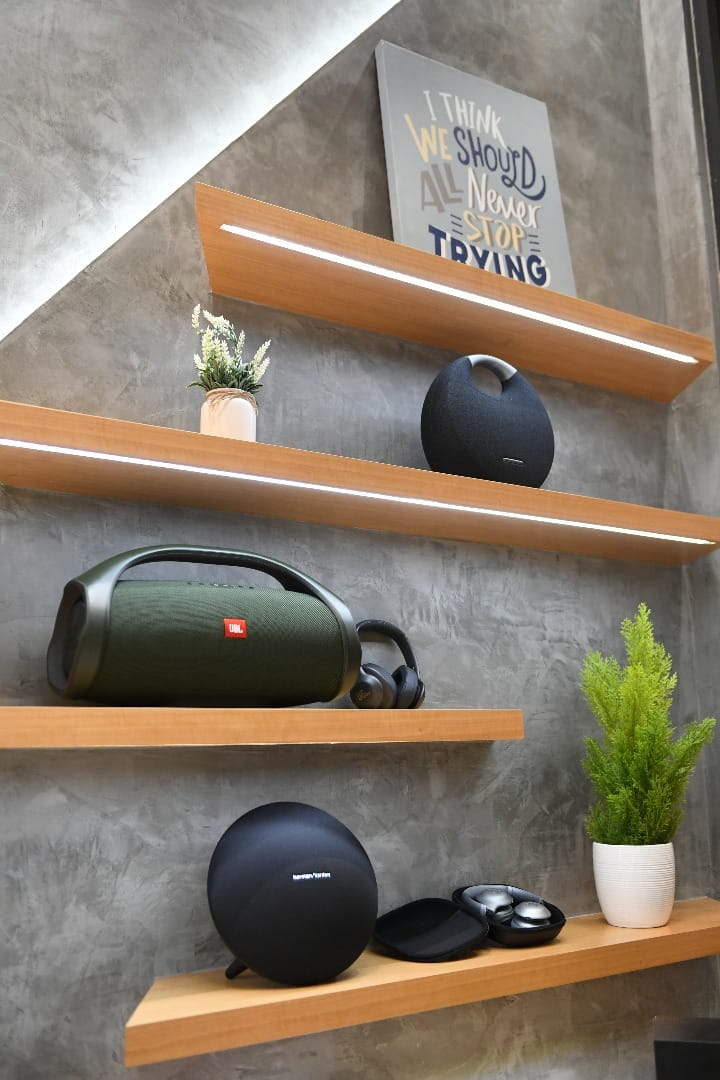 Studio ini menempatkan ruang pameran dua tingkat berkeluasan lebih daripada 3,000 kaki persegi. Menjadi kebanggaan sebagai ruang pameran Harman yang terbesar di Malaysia, ia melibatkan ruang pameran dengan konsep gaya hidup yang paling eksklusif. Pengunjung dapat mengalami sendiri gaya hidup Harman yang dijelmakan semula oleh pembesar suara mudah alih dan fon kepala Harman. Selain itu, mereka juga dapat menyesuaikan diri dengan konsep rumah Harman yang dimeriahkan oleh bar bunyi, teater rumah dan ruang audio mewah.