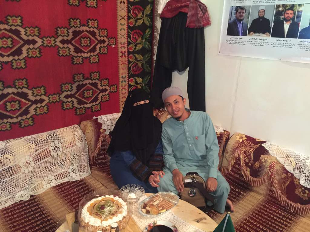 JAZLAN JAN: Sebenarnya kami sama sama tinggal di Madinah. Isteri bekerja dan saya pelajar. Kisah pertemuan kami pada musim Haji tahun lepas sewaktu kami menyambut kedatangan jemaah Malaysia di Madinah. Dari situ kami berjumpa mak ayah angkat isteri datang menziarahi Madinah. Yang menariknya tak sangka kami sekampung. Sebelum berhubung dengan dia, saya meminta izin dari mak ayah kandungnya dulu dan alhamdulillah mereka merestui. Dan dengan izin Allah urusan pernikahan kami dipermudahkan sewaktu kami sama-sama bercuti semester.