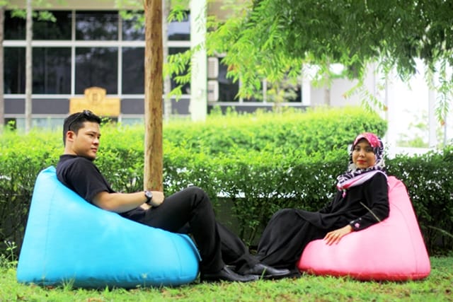 ABDUL AZIM: Bean bag boleh diklasifikasi sebagai sofa atau bantal besar. Bentuknya yang kepelbagaian dan tidak mempunyai struktur rigid memudahkan pengguna untuk bersantai dan berehat. Jadi ini menarik minat kami untuk mereka bean bag dari idea kami dalam menghasilkan bean bag yang mampu memberi manfaat secara emosi dan fizikal. Tidak semestinya kita akan terus baring atas katil untuk tidur atau duduk sahaja di sofa. Akan tetapi dengan ada nya bean bag, ia boleh digunakan untuk baring/duduk dan bersantai sebelum meneruskan kerja harian. Ini dapat melegakan kepenatan sesorang itu dan dari pandangan emosi, dapat mengembalikan mood yang positif.