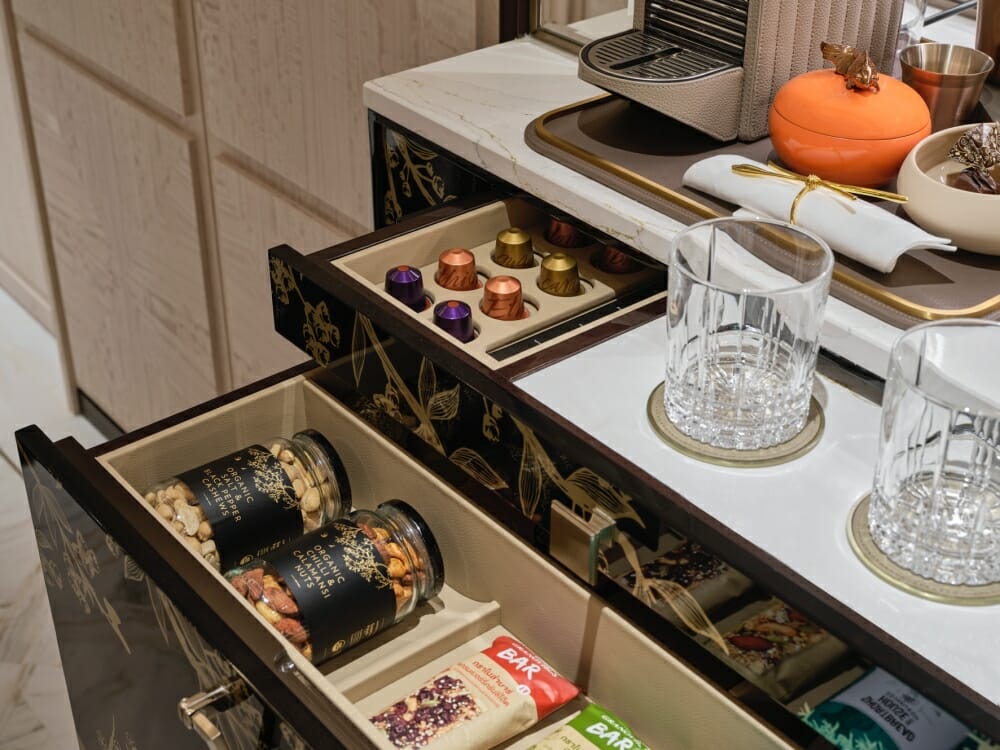 Desain sebagai sebuah penginapan urban, kamar mandi dihangatkan dengan skrin kaca artisan dan pencayaan tersendiri untuk memberikan deria ketenangan. Pengalaman penginapan turut sama dipertingkatkan dengan variasi kemudahan berjenama di sekitar bilik. Antaranya cadar Frette mewah, haruman Maison 21G tailor-made, peralatan porselin Legle, sistem bunyi Bang & Olufsen dan banyak lagi.