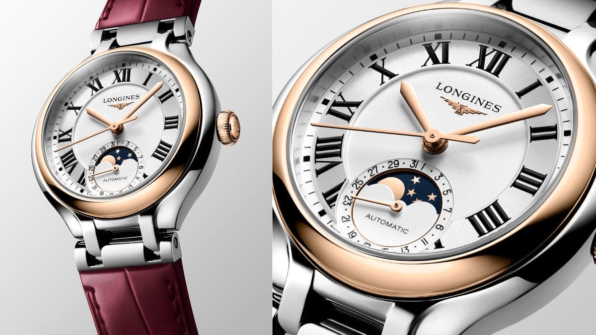 Untuk musim perayaan kali ini, Longines PrimaLuna kembali dengan rekaan yang meraikan keindahan feminin. Dihiasi dengan kemasan emas ros 18 karat dan tali kulit burgundy, jam ini membawa simbol bulan penuh yang romantik. Rekaan kali ini mencerminkan keseimbangan antara ketepatan teknikal dan keindahan puitis. Dikuasakan oleh kaliber automatik dengan komplikasi fasa bulan, ia menjadi pilihan ideal bagi wanita yang percaya pada keindahan setiap kitaran kehidupan.