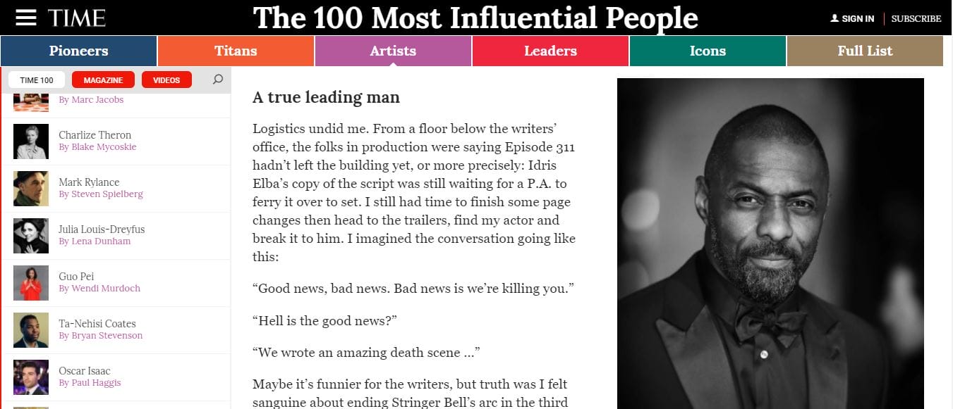 2. Pemilik nama Idrissa Akuna Elba sebelum ini pernah disenaraikan dalam 100 Individu Paling Berpengaruh di dunia oleh majalah Time.