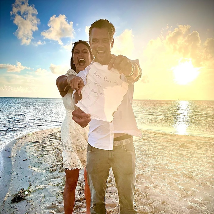 “Audra menemui mesej di dalam botol yang terdampar di tepi laut dan berkata YA! (memberi persetujuan),” tulisnya di ruangan kapsyen pada foto mereka di mana Josh dilihat memegang sekeping kertas berserta mesej, “Audra Diane Mari, sudikah anda mengahwini saya?”.