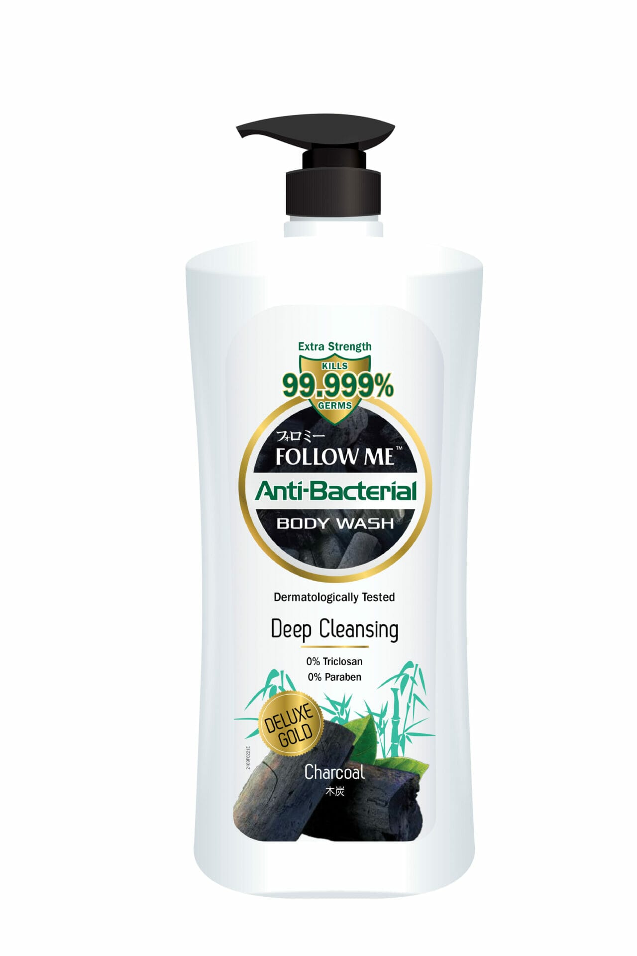 FOLLOW ME™ Deluxe Gold Deep Cleansing Anti-Bacterial Body Wash; mandian badan dengan rumusan unggul yang Halal, diperkaya dengan ekstrak arang semula jadi untuk membersihkan secara rapi dan menghapuskan 99.999% kuman. Arang memberikan pelbagai manfaat kepada kulit seperti pembersihan rapi dan peluluran tanpa menghapuskan minyak semula jadi pada kulit. Ia juga membuang kotoran yang lebih dalam, termasuk kulit mati dan bintik hitam dan menyahtoksinkan dan mengetatkan kulit dan pori. Produk yang tidak merengsakan ini telah diuji secara dermatologi dan lembut kepada kulit, lantas memberikan perlindungan bakteria semula jadi dan serba lengkap untuk seisi keluarga.