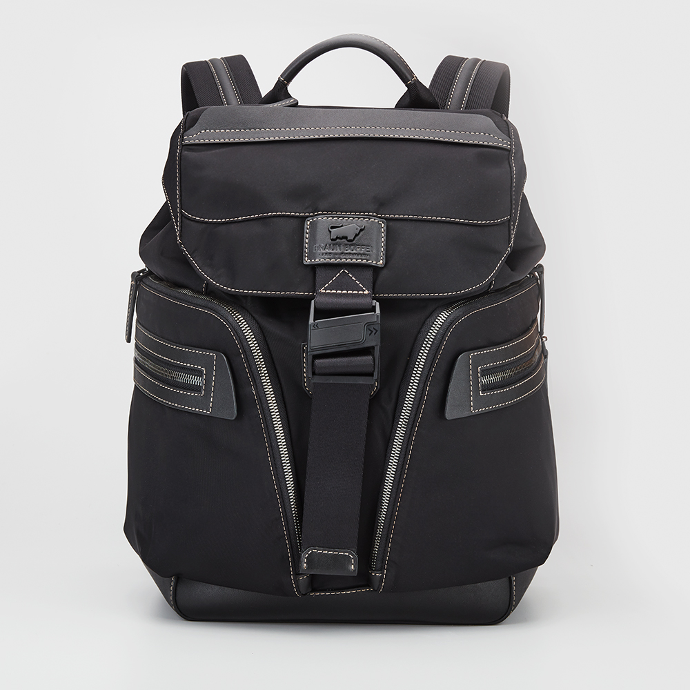 Dengan nada hitam yang berani dan gabungan utiliti nilon yang dikitar semula dengan material kulit Nappa, siri B. Squad adalah pendamping ideal untuk pengembara muda yang serba aktif.  Siri beg B.Squad dicipta secara teliti berpegang pada ideologi kelestarian fesyen. B.Squad menggabungkan elemen stail, kefungsian dan keselesaan pada satu rekaan yang sama.