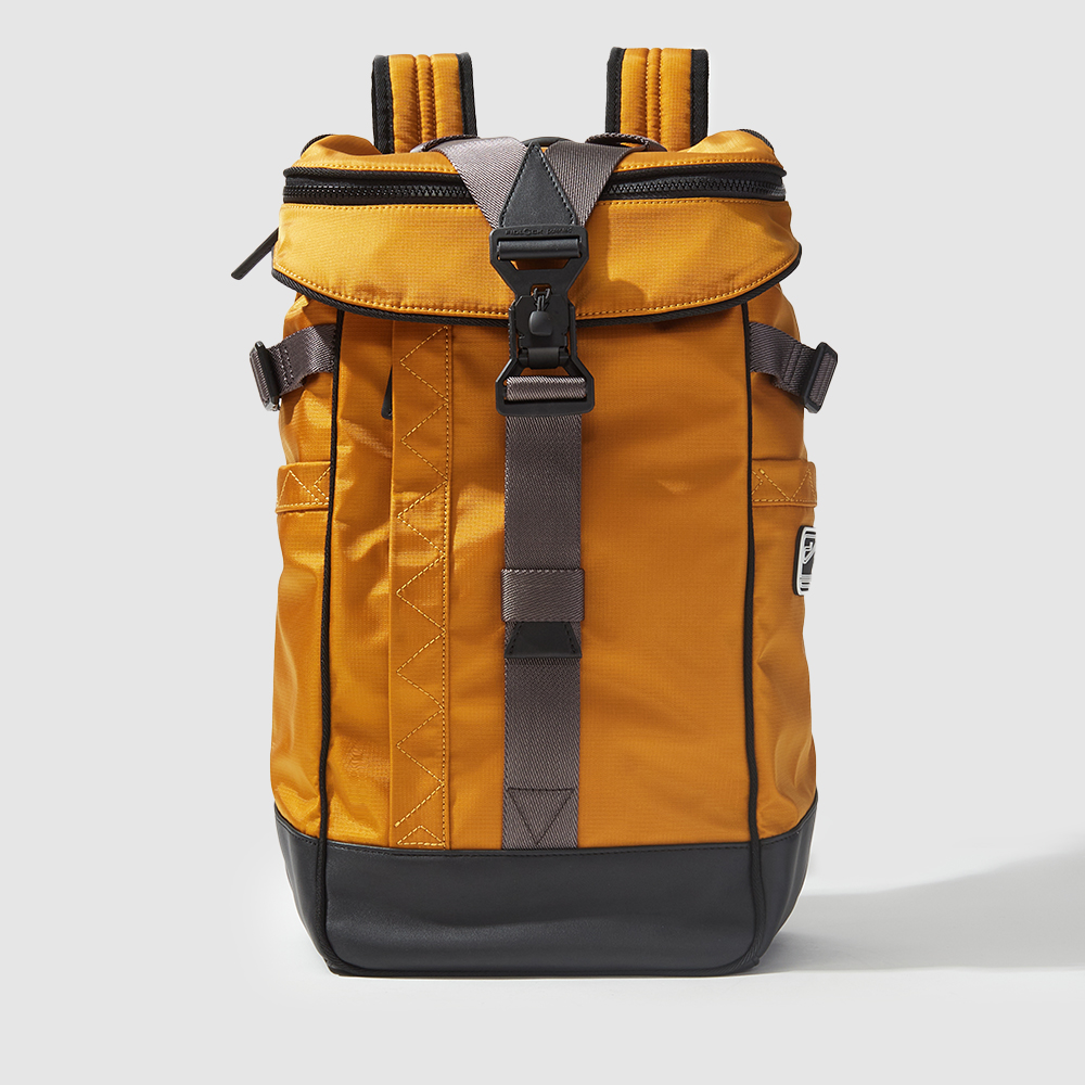 Baye dilengkapi penutup atas V-Cut yang tidak simetri, diikat mudah dengan Fidlock untuk daya tahan beg yang kukuh. Hadir dalam kemasan seramik hitam. Ditonjolkan imejan laser warna kuning neon yang kontra, lagaknya sebagai butiran tambahan.