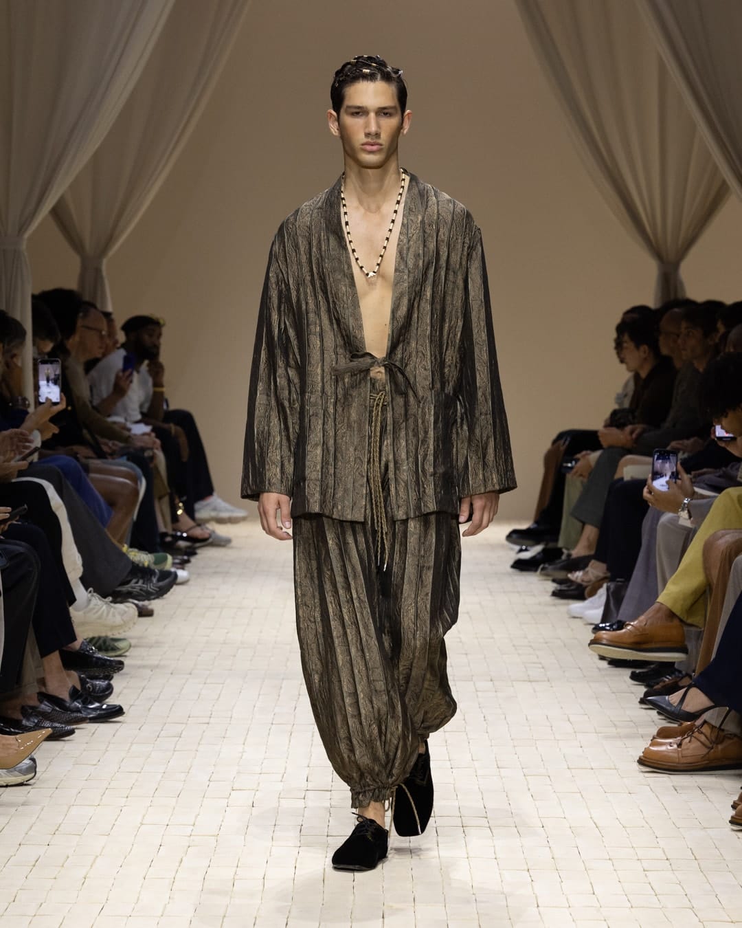 Fesyen musim panas lelaki kali ini tidak lagi meraikan potongan ketat atau gaya “streetwear” berlebihan. Sebaliknya, ia lebih menumpukan kepada kelonggaran, pergerakkan dan hubungan semula jadi dengan tubuh si pemakai. Seluar potongan lebar, baju tanpa lengan yang tidak agresif, kemeja berbalut seperti jubah; semuanya menjemput angin dan cahaya menyentuh kulit. Beberapa rekaan mengimbas siluet tradisional; sarung, jubah longgar, atau lapisan gaya 90-an.