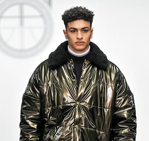 Versace antara yang memberi nafas baru kepada metalik, diinsipirasikan daripada tema lelaki di angkasa lepas. Dengan mengolahnya dalam rupa sleek bersama teknik jahitan klasik dan material yang digunakan merujuk kepada atmosfera galaksi. Pada kot panjang, seluar dan jaket aviator, yang semuanya nampak cukup berani.