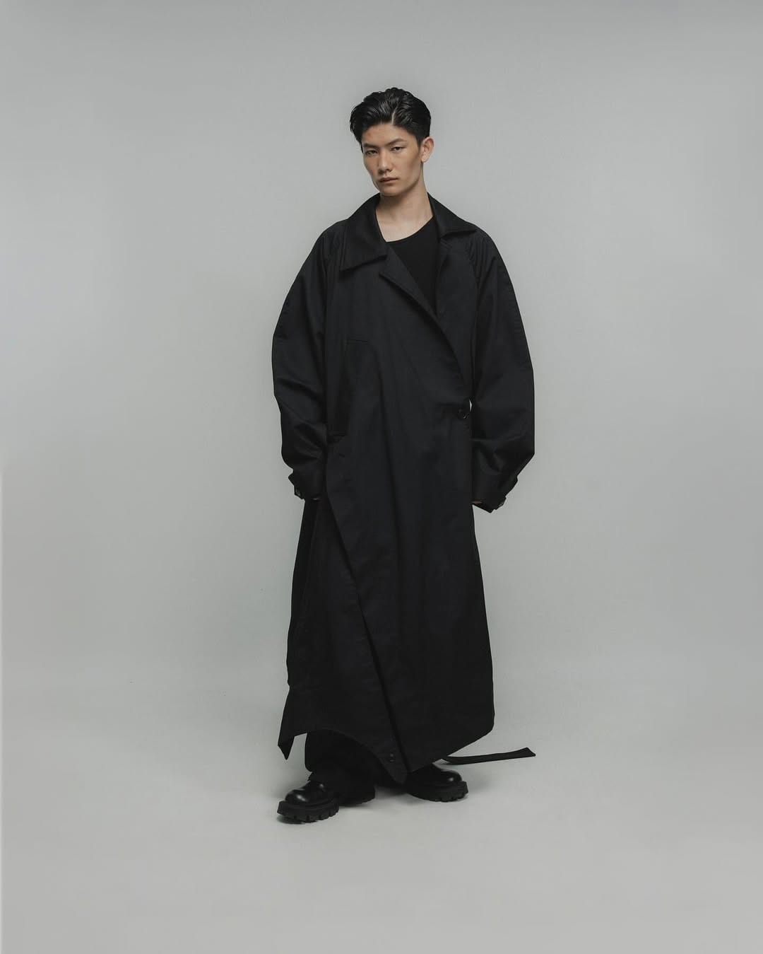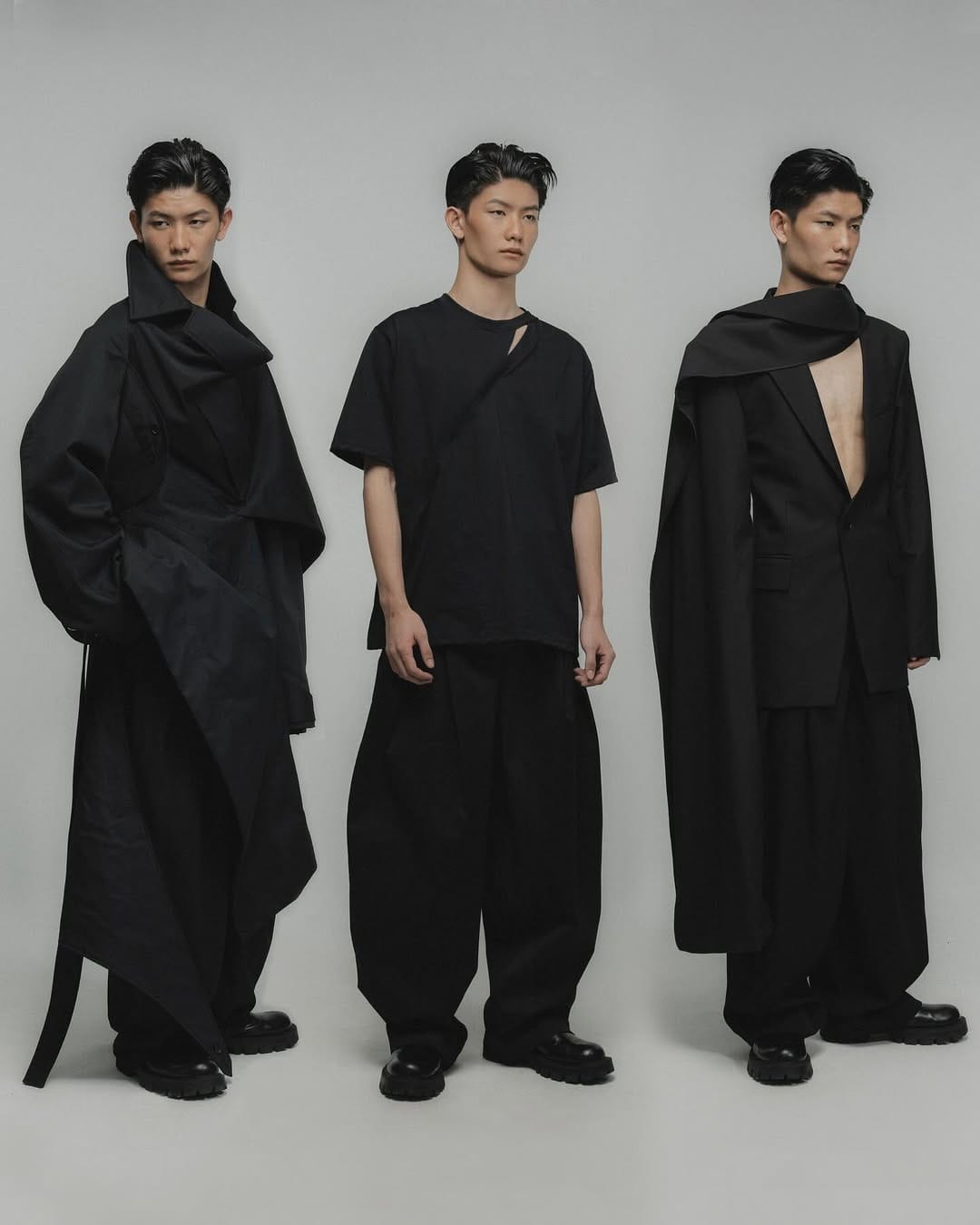 Oversized masih kekal sebagai DNA label ini, tetapi kali ini ia lebih terarah. Bahu dijatuhkan secara elegan, struktur jaket lebih halus, dan seluar berpotongan lurus menjadi asas utama gaya. Keterampilan tailoring KITWOO menjadi tumpuan; setiap helaian bagaikan diolah untuk membawa keseimbangan antara ‘functional dan deconstructional fashion sensibility.’