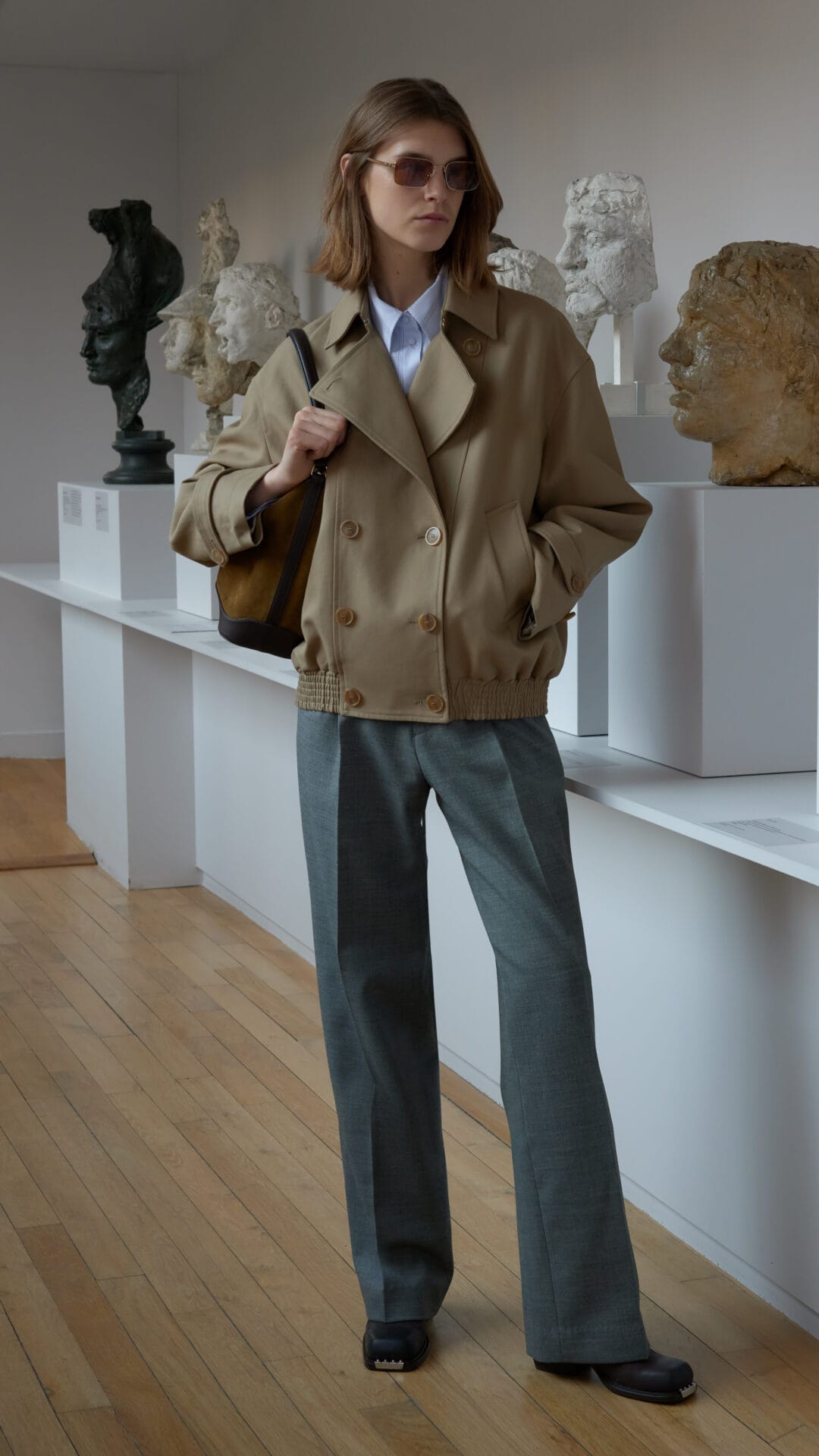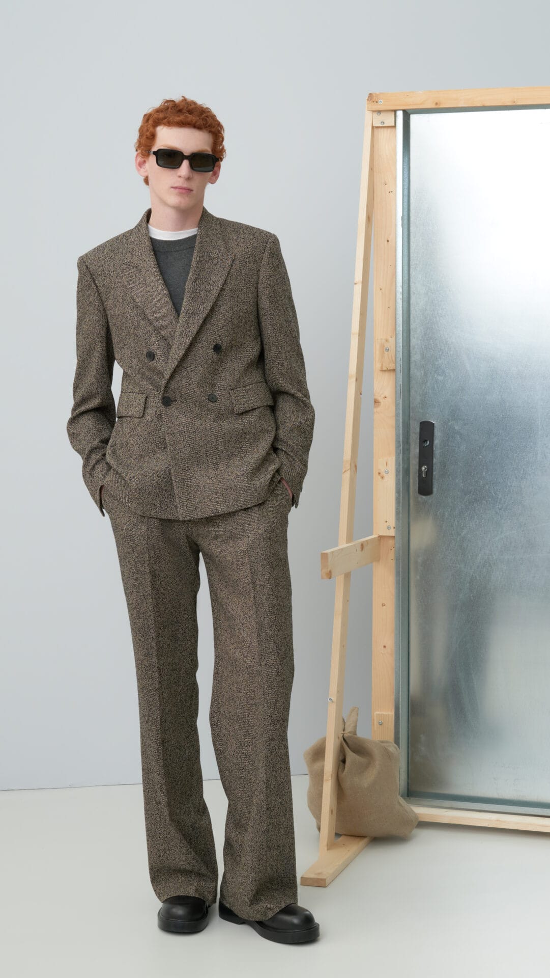 Cetakan floral berinspirasikan watercolour memberi sentuhan etereal, melembutkan potongan seni bina yang tegas. Dari knit ringan hingga ke kot berstruktur setiap helaian mengalir dalam harmoni semula jadi menjadikan keanggunan sofistikated dengan keselesaan kasual. Tekstur menjadi teras koleksi ini. Cashmere marled, wool mentah, kulit lusuh, fabrik teknikal, hingga ke suede semuanya dipersembahkan dalam permainan kontras yang penuh tenaga. Palet warna pula menari di antara neutral bumi, biru pekat, hitam intens, merah kaya, hijau bertenaga, dengan aksen merah jambu dan oker yang memberi ritma segar.