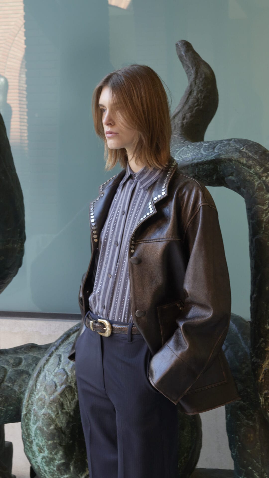Di sisi lain, nuansa pejabat turut dirombak melalui segmen “Business Call”. Gabungan tailoring maskulin, tali leher rapi dan lavallière collar yang feminin, mencipta imbangan sempurna antara struktur seragam dan keanggunan lembut. Ekspresi gaya era 1960-an turut hadir melalui helaian kulit dengan potongan berani, dipadankan but biker yang tegas serta seluar corsair yang menjadi statement. Dengan pendekatan minimalis, Sandro hanya memberi apa yang perlu seperti siluet ringkas, potongan body-conscious, dan sentuhan feminin. Keseluruhan koleksi ini bagaikan manifestasi keberanian baharu; berdiri sendiri, bebas daripada konvensi, serta menyalurkan autentisiti yang tidak dapat dipertikaikan.